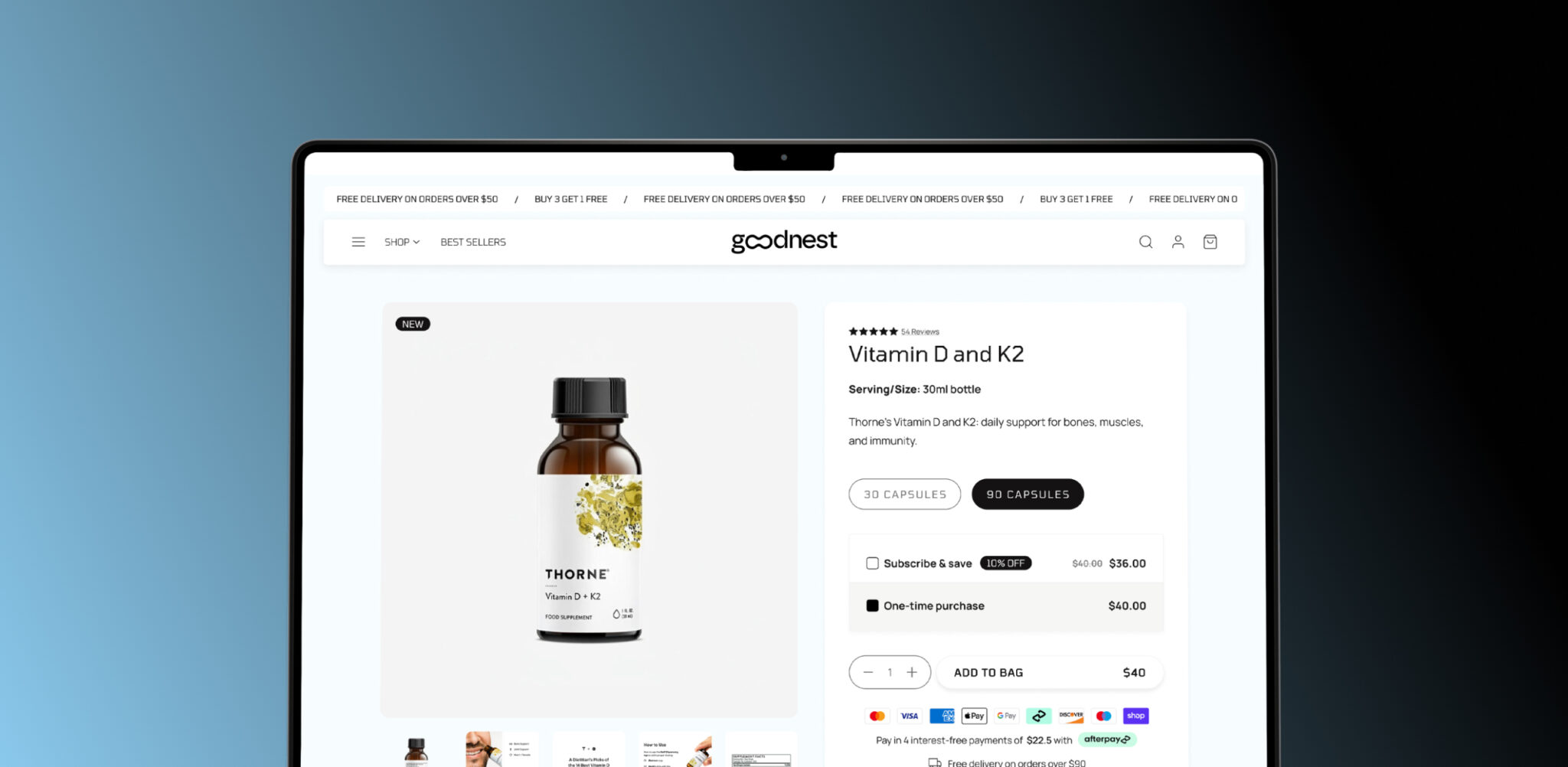 With the brand established, we designed a user-friendly, mobile-first e-commerce experience tailored to Goodnest’s subscription model and category structure. Product pages highlight benefits, routines, and brand stories, while the navigation lets customers shop by category, brand, or wellness goal with ease.