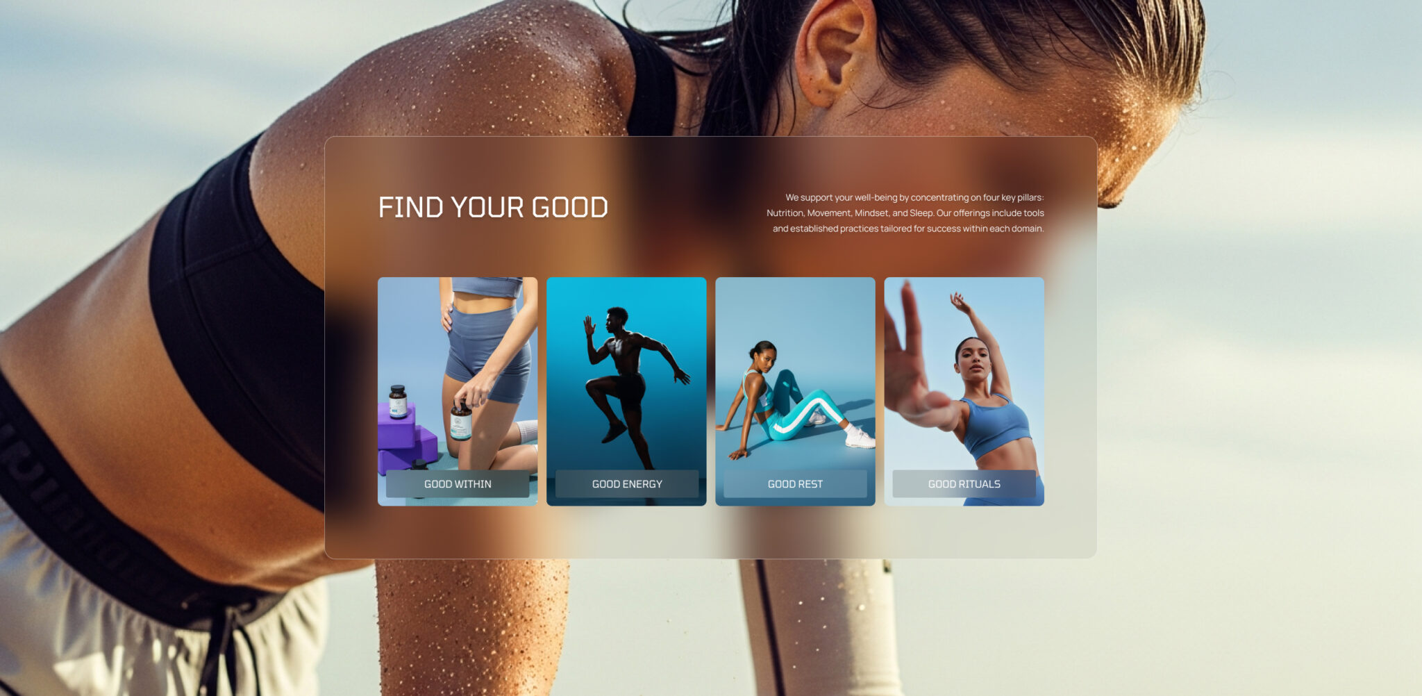 Our goal was to create a brand and digital presence that reflected Goodnest’s core values: clarity, trust, and a forward-thinking approach to wellness. We began by developing the full brand system, shaping an identity that blended a futuristic, science-led aesthetic with softer lifestyle elements to keep the tone warm, accessible, and human. The result was a visual world that felt premium yet approachable, modern yet grounded.